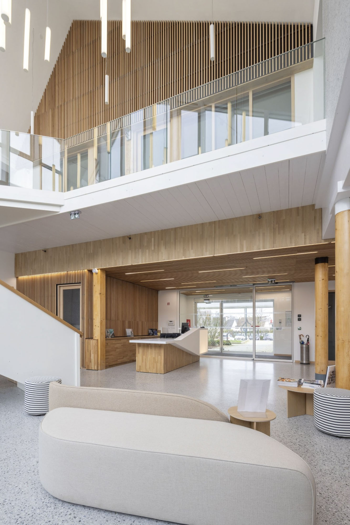 Structure bois : MOB + caissons toiture + planchers intermédiaires et refends en CLT.